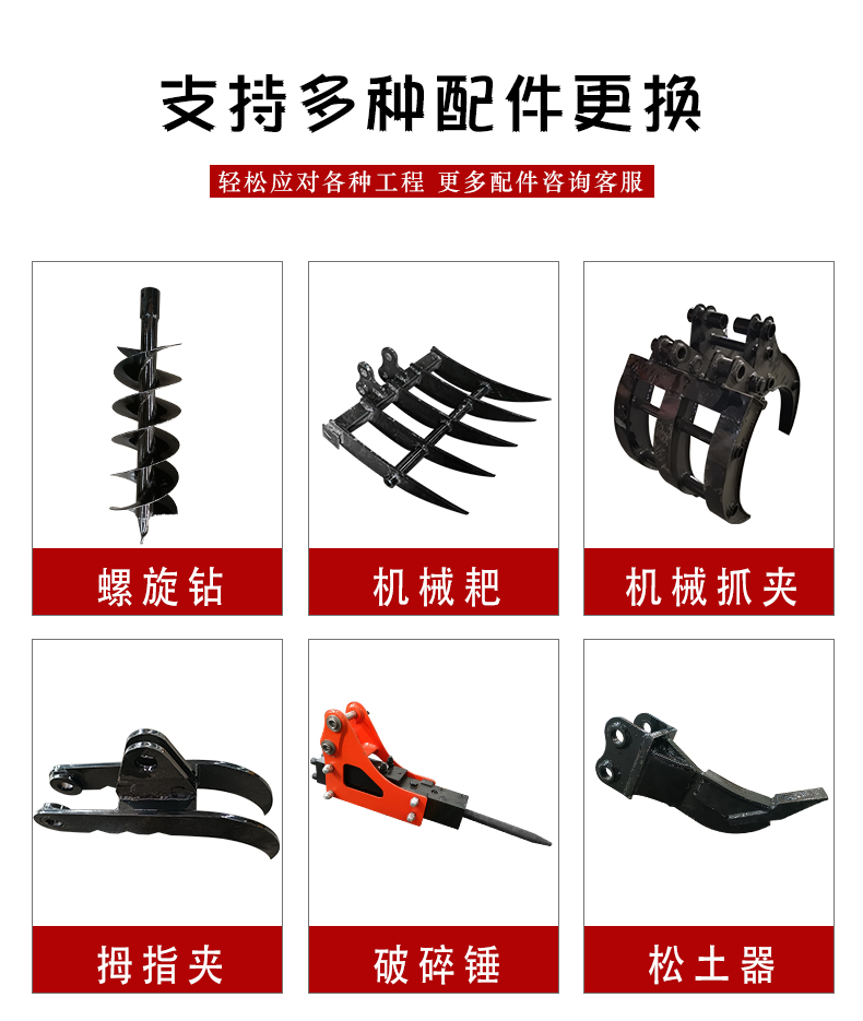 2、標(biāo)準(zhǔn)配置推土鏟可平整土地、土方回填、增加整機(jī)穩(wěn)定性。