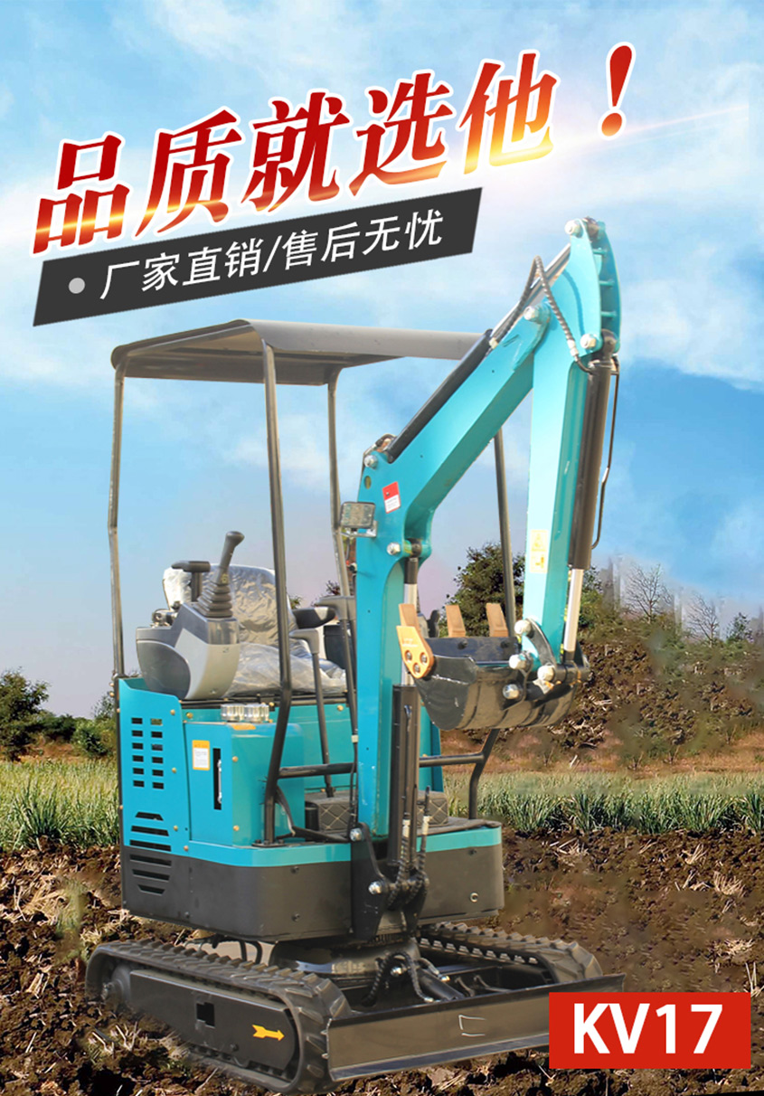 KV17小型挖掘機自主設計、外觀漂亮、配置高、性能優(yōu)越、油耗低、作用范圍廣 ,適合蔬菜大棚的土地疏松,市政府部門的園林綠化、果園苗圃栽樹挖坑,混凝土路面破碎, 砂石料攪拌,空間狹小的施工作業(yè)等。適用快