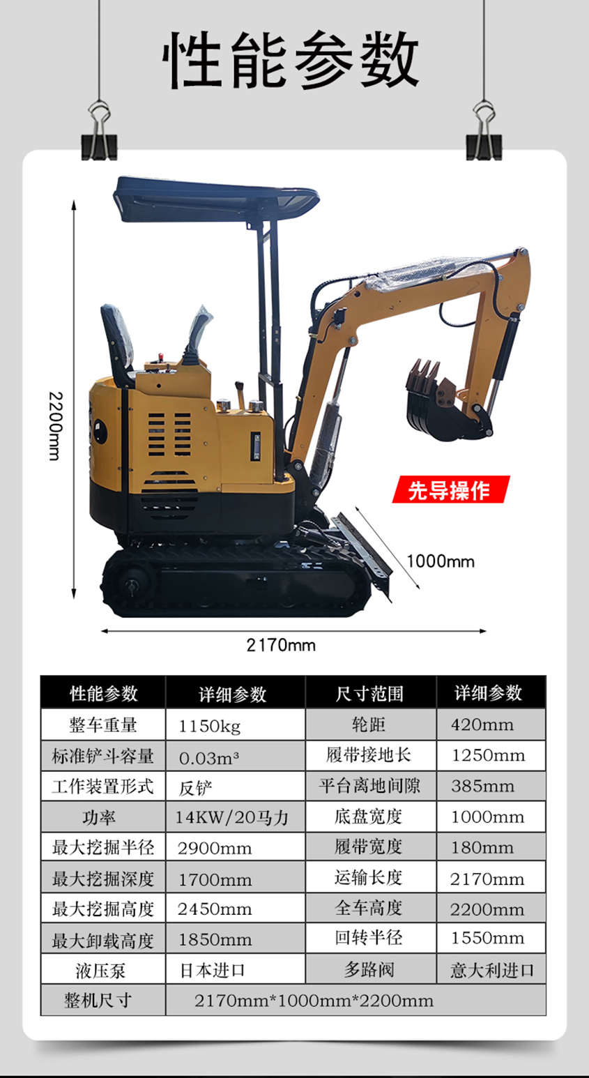 整車重量:1150KG標準鏟斗容量:0.025m3額定功率/轉速:14kw/20馬力