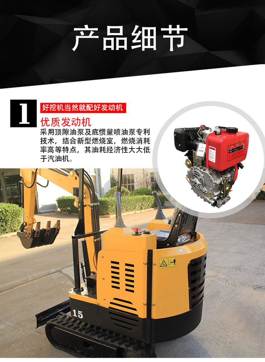 KV15小型挖掘機產品配置高,性能優越,油耗低,作業范圍廣。適合蔬菜大棚的土質疏松,市政部門的園林綠化,果園苗圃栽樹挖坑,混凝土路面破碎以及砂石料攪拌等空間狹小的施工作業